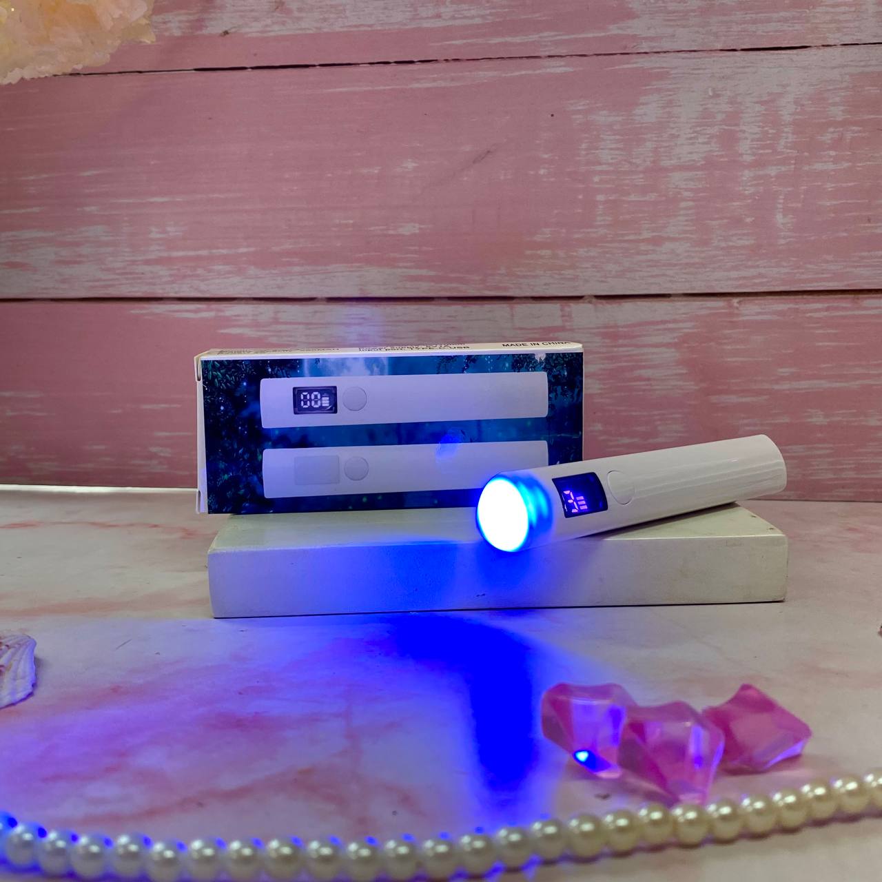 - ✨Luz en tono violeta, suave con las uñas.