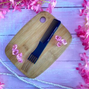 Fabricada en acero inoxidable de alta calidad, ofrece un filo duradero que permite realizar cortes suaves y definidos sin maltratar el cabello.