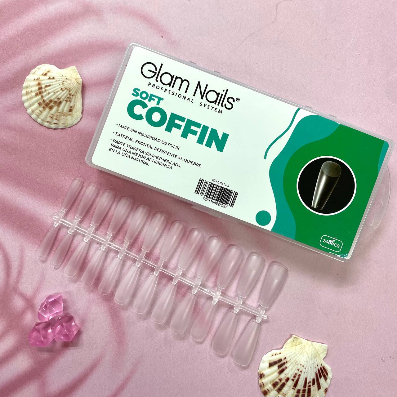 Uñas Soft Coffin Glam Nails 240pcs